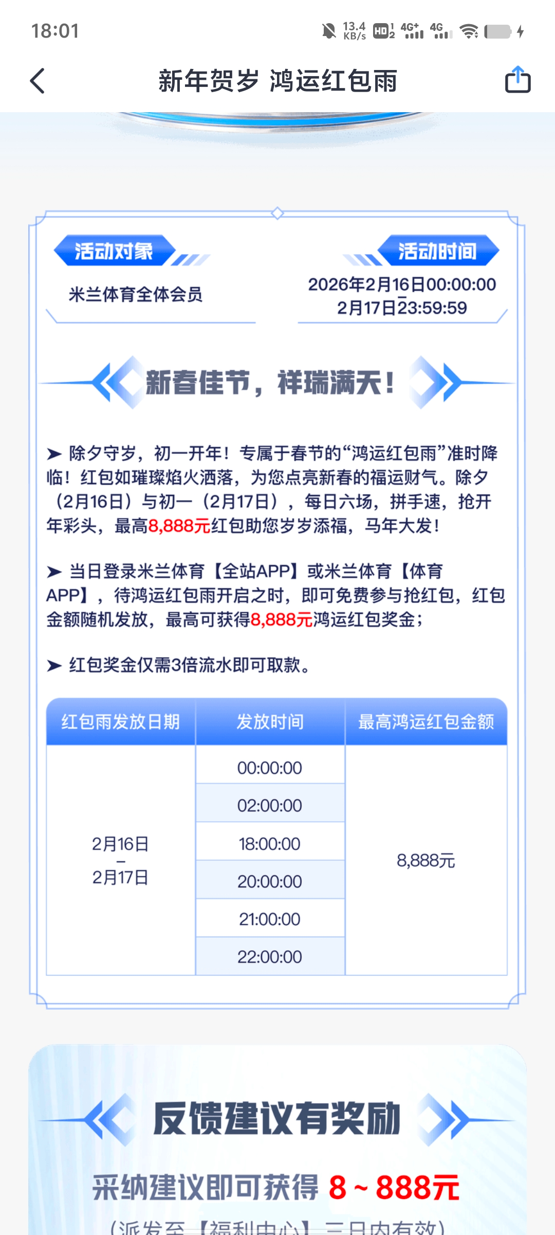 米兰今天还有晚上八点九点十点三个红包可以抢